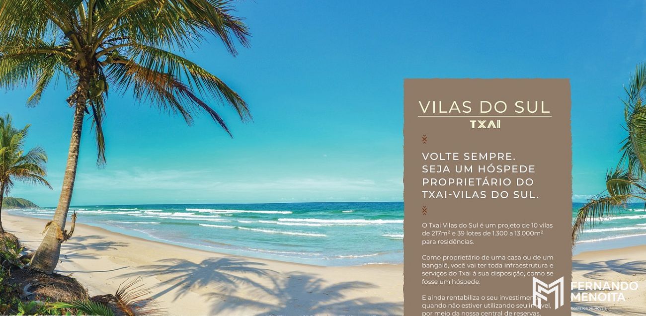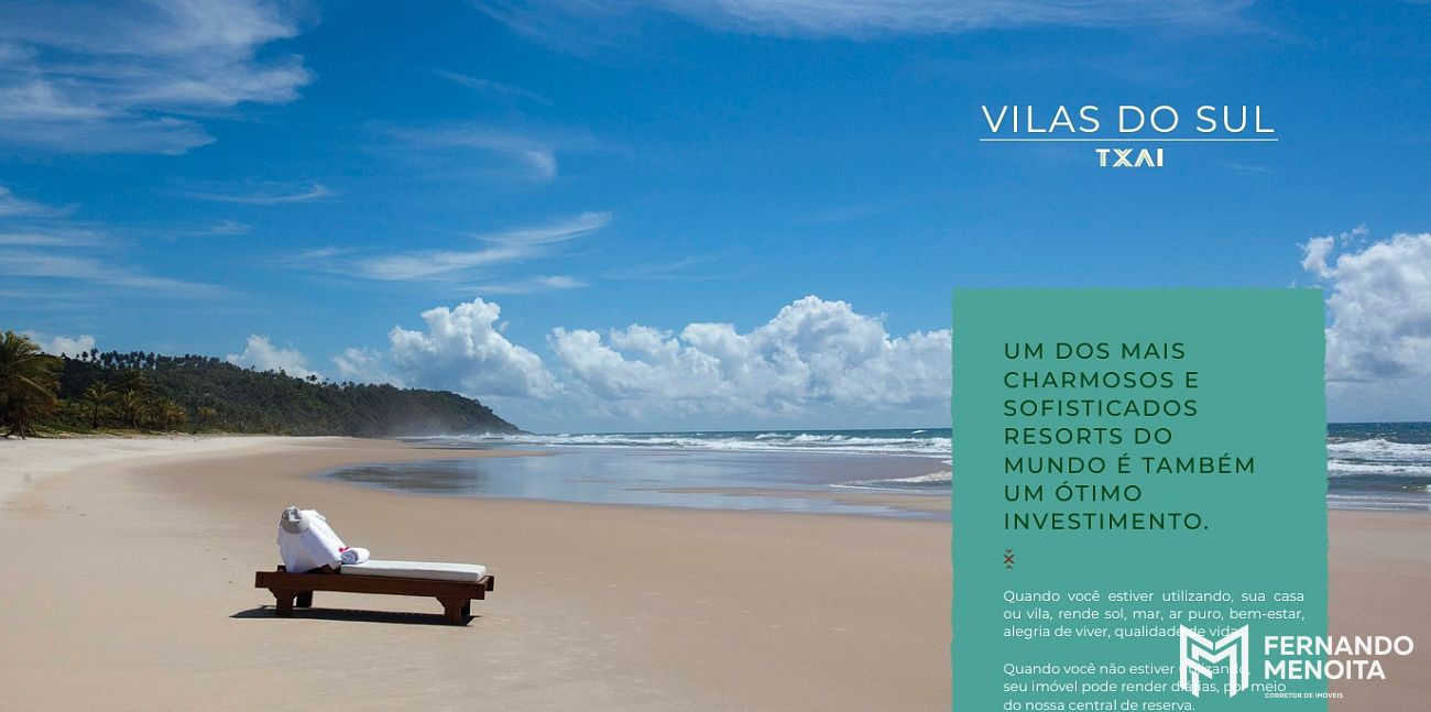 O Txai Vilas do Sul representa um conceito exclusivo de moradia no litoral da Bahia, onde natureza, sofisticação, privacidade e rentabilidade se encontram em um único projeto, consolidando-se como uma oportunidade rara dentro do segmento imobiliário turístico de alto padrão.