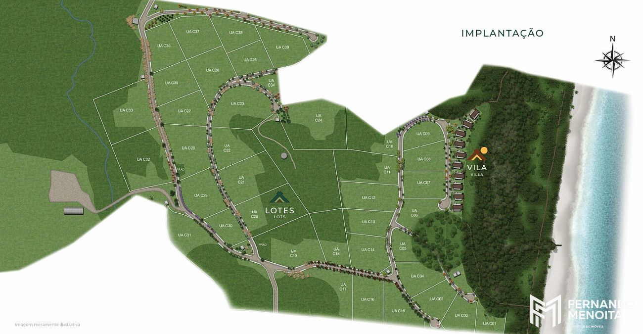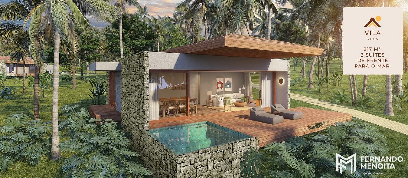 O empreendimento é composto por 10 vilas residenciais de 217 m², todas com 2 suítes e posicionadas de frente para o mar, além de 39 lotes com metragens que variam de 1.300 m² a 13.000 m², destinados à construção de residências personalizadas.